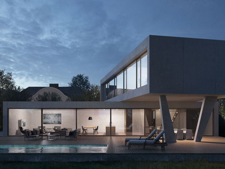 an schöner wohnlage in der stadt solothurn entsteht dieses expressive wohngebäude mit zwei übereinander liegenden und verschobenen wohnkuben. durch diese verschiebung entstehen markante auskragungen welche mit dynamischen stützenformen unterstützt werden. die ausrichtung der parzelle fängt gezielt den gesamten sonnenverlauf des tages ein. die privaten schlafräume mit einem separatem masterbedroom, befinden sich im obergeschoss. die loftartigen wohnzonen gliedern sich im erdgeschoss an. von hier gelangt man elegant in die gartenebene mit poollandschaft und grossem terrassendeck.
